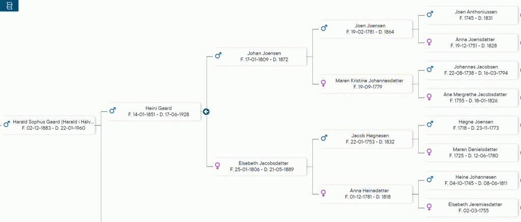 Harald Sophus Gaard føddur 2. december 1883, í Oyndarfirði. Hann var sonur Heina Gaard og Annu Gaard. Harald var Skipstimburmaður. Hann doyði í 1960, 76 ára gamal í Oyndarfirði.