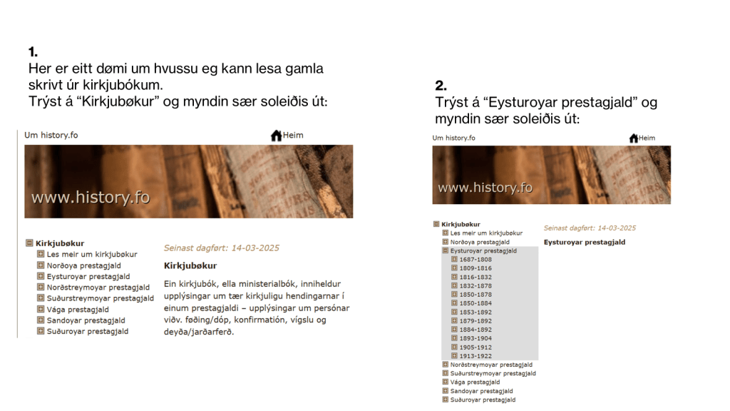 Ættargransking, familja og ættarsøga eftir Eyðun Gaard úr Oyndarfirði.